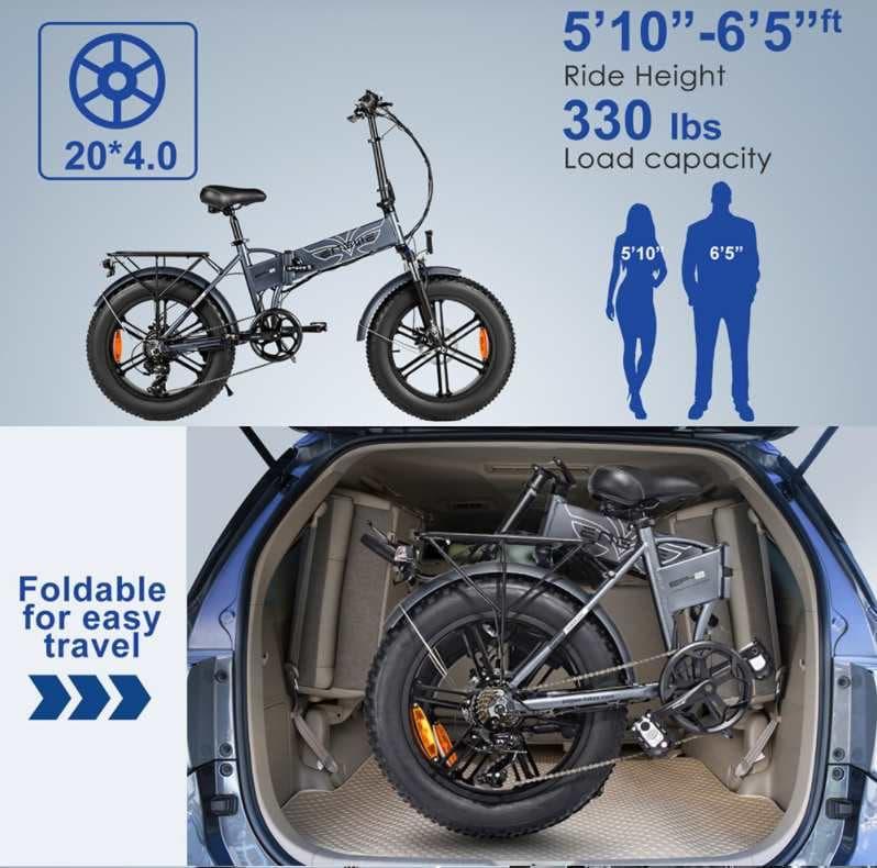 La EP-2 Pro es una elegante bicicleta eléctrica de montaña con neumáticos anchos. El marco de aleación de aluminio de 20 pulgadas tiene un acabado brillante. Plegable, portátil y conveniente para guardar en su automóvil o en cualquier lugar y plegarse en 10 segundos. Con un motor de alto torque de 750 W, está listo para manejar cualquier misión.