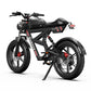 The F20 electric bike is equipped with high-performance 20 x 4-inch wide tires that offer excellent shock absorption, allowing you to glide effortlessly over bumps and uneven surfaces while ensuring optimal stability and control.