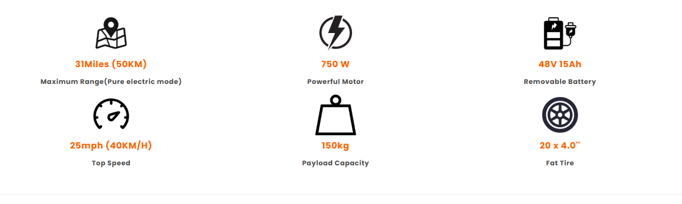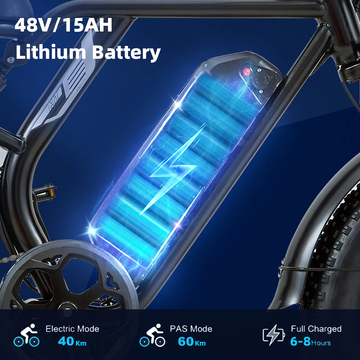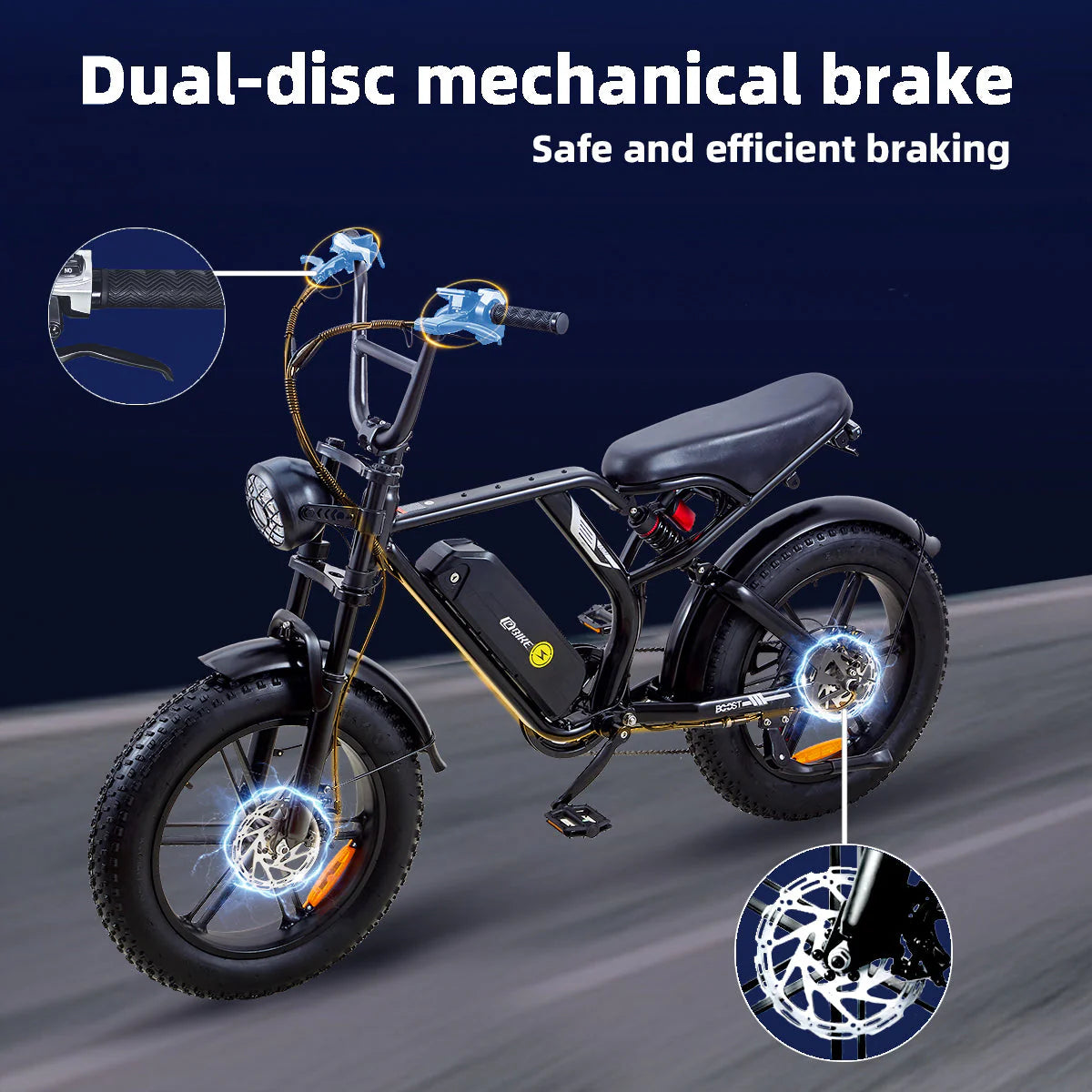 The Burchda H1 blends retro styling with modern electric performance. Powered by a 750W motor (60–70 Nm torque) and a 48V 15Ah removable battery, it delivers up to 50 km range and speeds of 40 km/h.