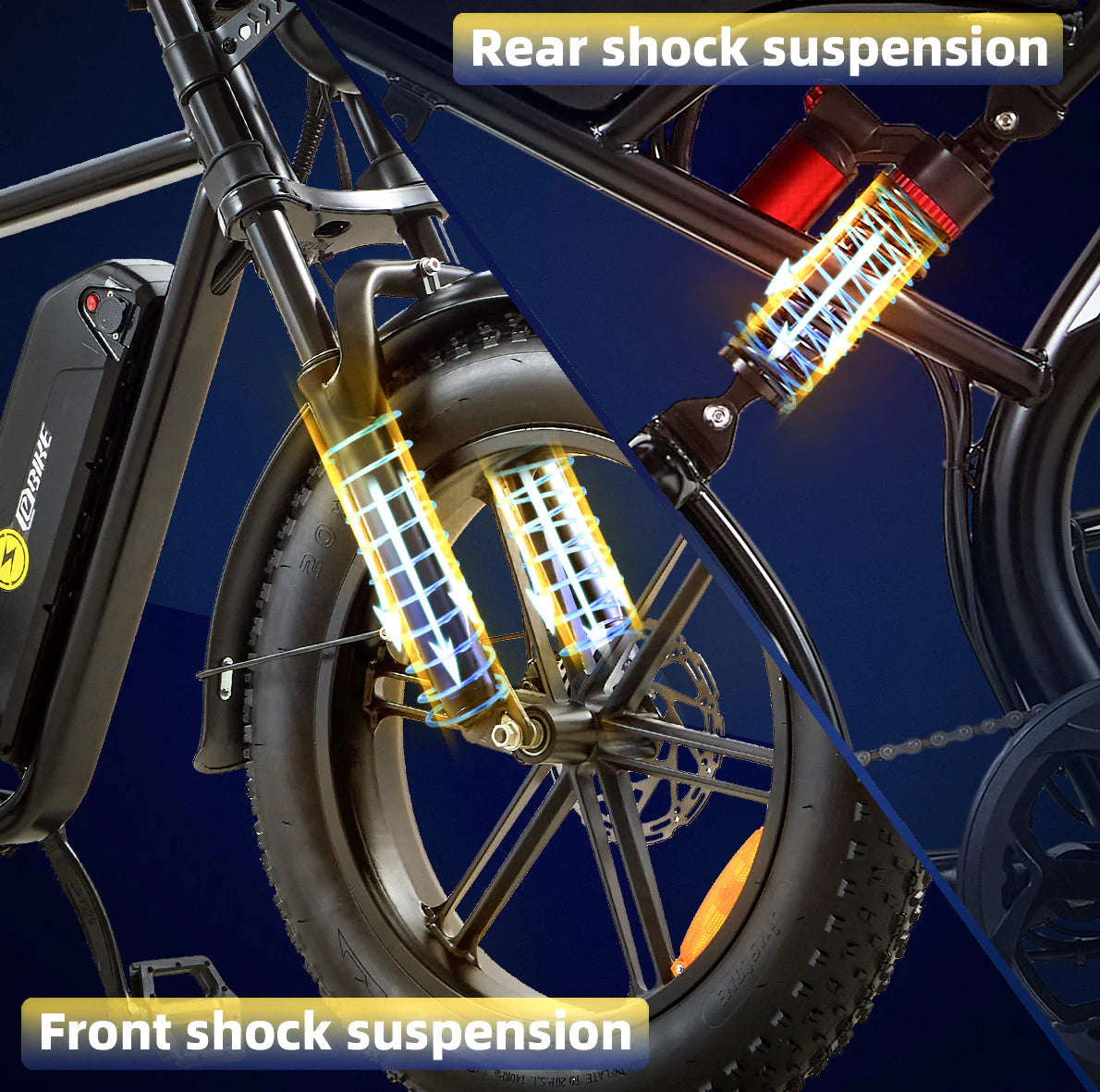 Ride with confidence on 20″ fat tires, dual suspension, and reliable double-disc brakes. The H1 also features pedal-assist, throttle, and cruise control, plus a smart LCD display for all your ride data.