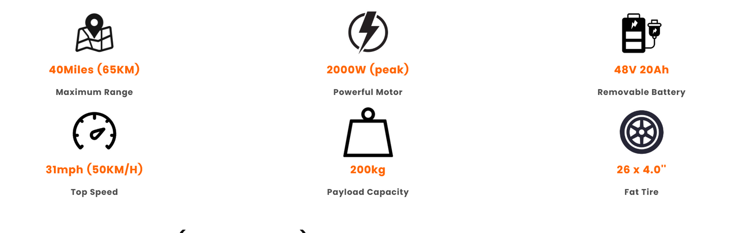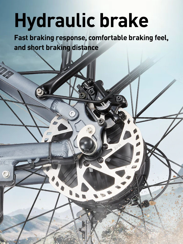 Equipped with safety-certified battery (UL2849 standard) with 960Wh capacity, it offers remarkable endurance, powering you up to 50 KM in pure electric mode and 75KM with pedal assist mode.