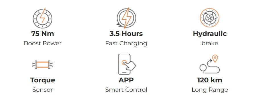 The ENGWE EP-2 3.0 Boost is a fully upgraded folding e-bike built to feel punchy and controlled in real everyday riding, from stop-and-go commuting to mixed-surface weekend routes. It runs a 48V hub motor delivering up to 75Nm of torque and uses a torque sensor for more natural, responsive pedal assist, while the foldable step-through magnesium-alloy frame keeps it practical to store and transport without losing that solid, premium look. For comfort and stability, the visuals and specs highlight a suspension fork with 50mm travel and adjustable lockout, paired with 20×4.0 urban hybrid tires that include a 3mm anti-puncture layer, giving you confident grip and a smoother ride over rough city streets, gravel paths and more. A 48V 13.5Ah (648Wh) battery supports a real-world range up to 120km in PAS 1 depending on conditions, and the included 4A charger is positioned for a full charge in around 3.5 hours, which is genuinely handy for frequent riders. Control and safety are covered with dual-piston hydraulic disc brakes and 180mm rotors front and rear, a bright 30-lux front light with integrated e-horn, and a rear light that intensifies when braking or shaking, while the mid-mounted 3.5-inch color LCD adds Bluetooth and ENGWE app connectivity for smarter monitoring
