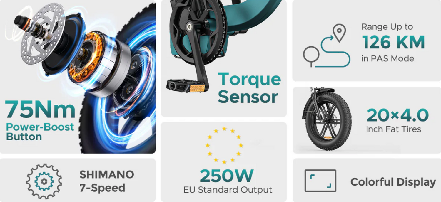 The Engwe L20 Boost is a versatile electric fat bike designed for both urban commuting and off-road adventures. Equipped with a 250W brushless motor delivering a robust 75 Nm of torque, it effortlessly handles inclines up to 17.8%, ensuring a smooth ride over various terrains.