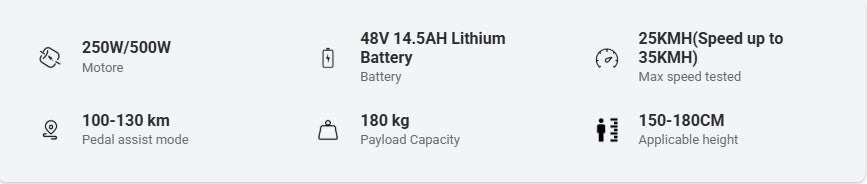 Comfort meets performance with the ES500 Pro’s advanced suspension and gearing systems. The front oil spring suspension fork effectively absorbs shocks from uneven roads, while the Shimano 7-speed transmission allows for seamless gear shifts to tackle varying inclines effortlessly. Safety is a top priority, featuring reliable mechanical disc brakes for responsive stopping power and a high-brightness LED headlight for night-time visibility. With a sturdy rear rack included for your groceries or gear, this electric city bike is designed to elevate your daily commute into a fast, eco-friendly, and enjoyable adventure