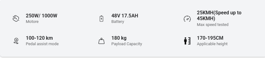 The X3000PLUS-UP has a large-capacity 17.5Ah lithium battery with a long battery life. The number of charge and discharge cycles exceeds 1000 times,.It can travel 50 km in pure electric and 100 km in pedal assist mode