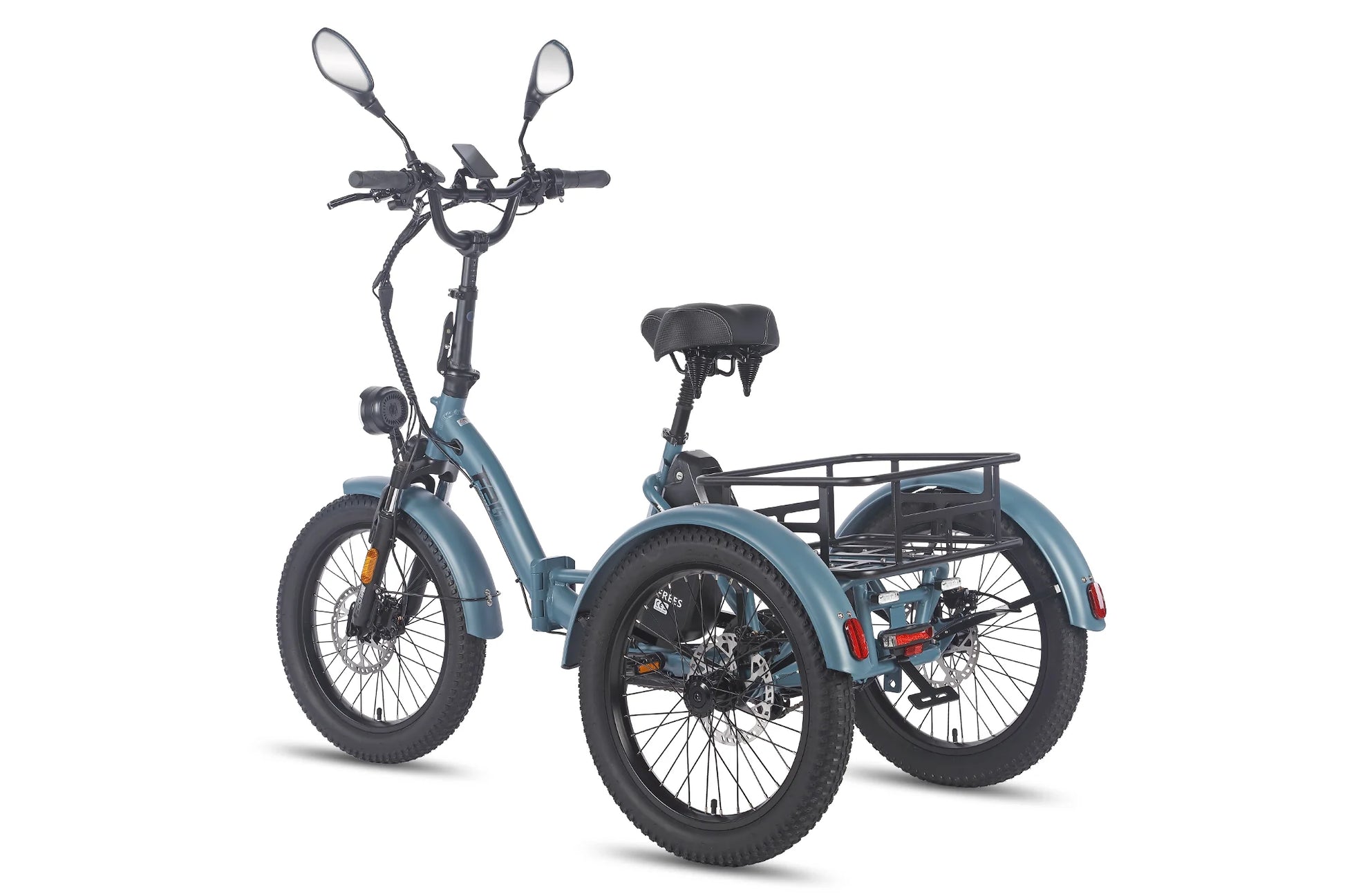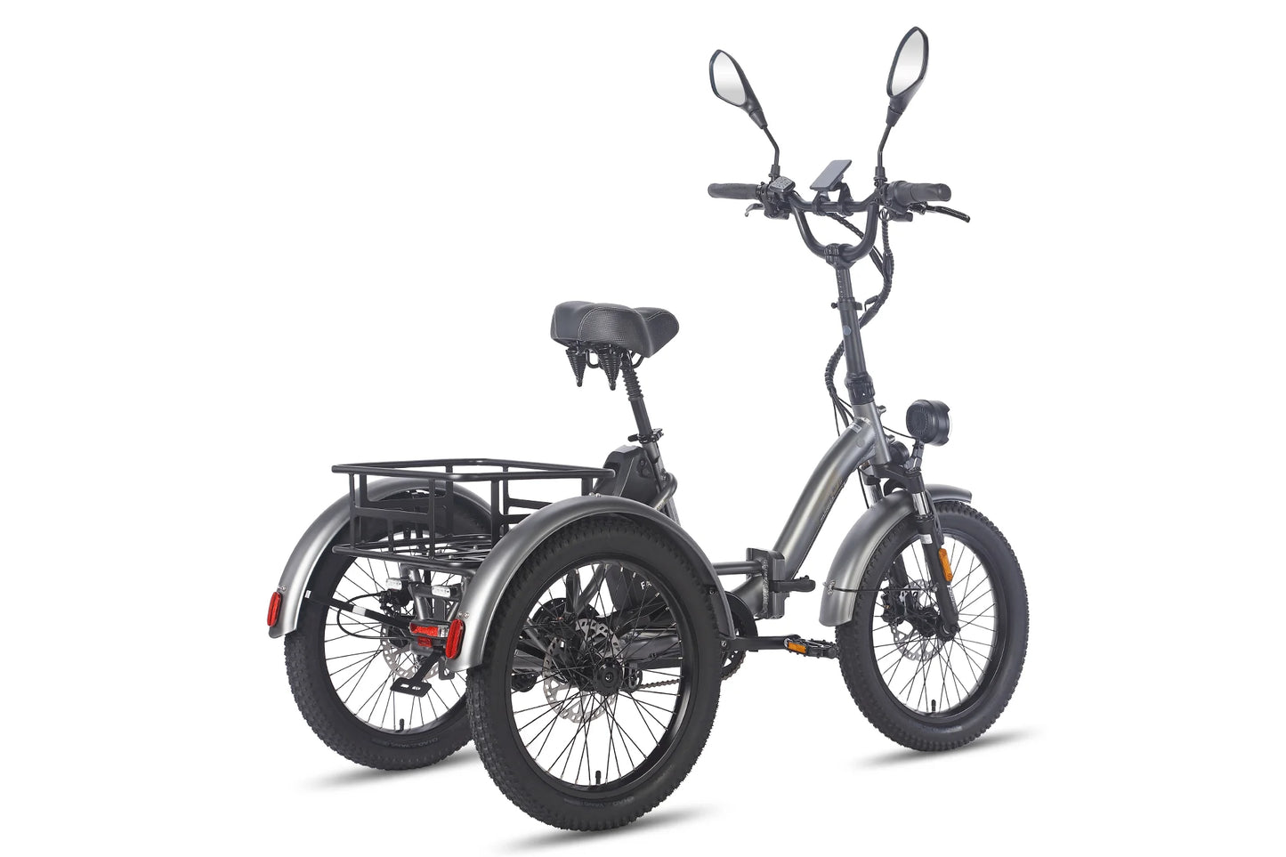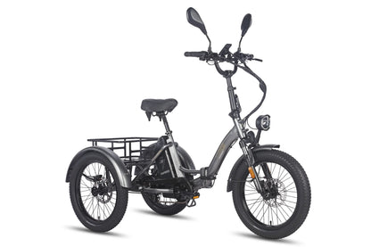 Descoperă toate avantajele unei biciclete electrice combinate cu stabilitatea a trei roți cu Fafrees F20 Mate Upgradat. Acest triciclu electric robust și stabil este echipat cu anvelope late pentru confort, apărători față/spate și un coș mare pentru marfă în spate.