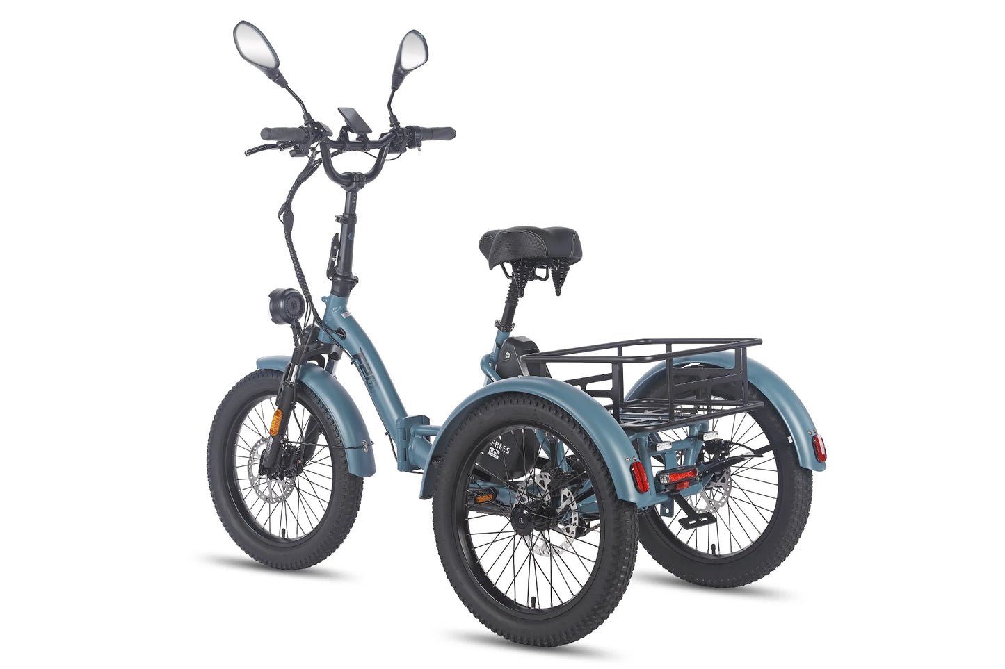 Pentru un plus de siguranță, triciclul este dotat cu semnalizatoare față/spate, lumini de avarie, claxon și oglinzi retrovizoare, asigurând vizibilitate și protecție în trafic. Versiunea de 23.45Ah vine și cu o șa confortabilă cu spătar, ideală pentru drumuri lungi.