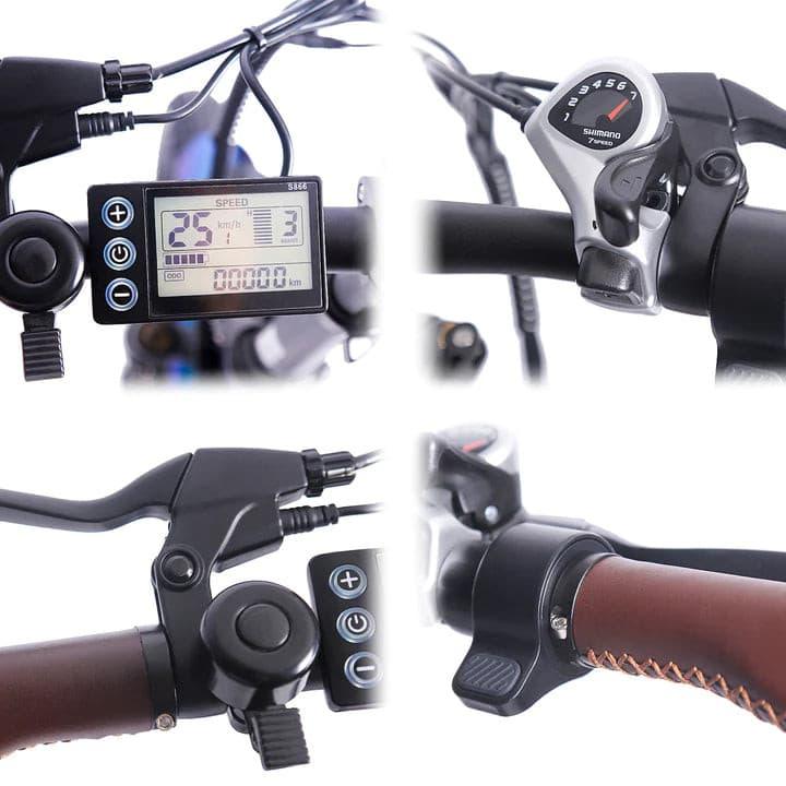 3'' wide tires with increased friction that can adapt to a range of riding conditions, including flat ground as well as snow, sand, mud, and gravel roads.